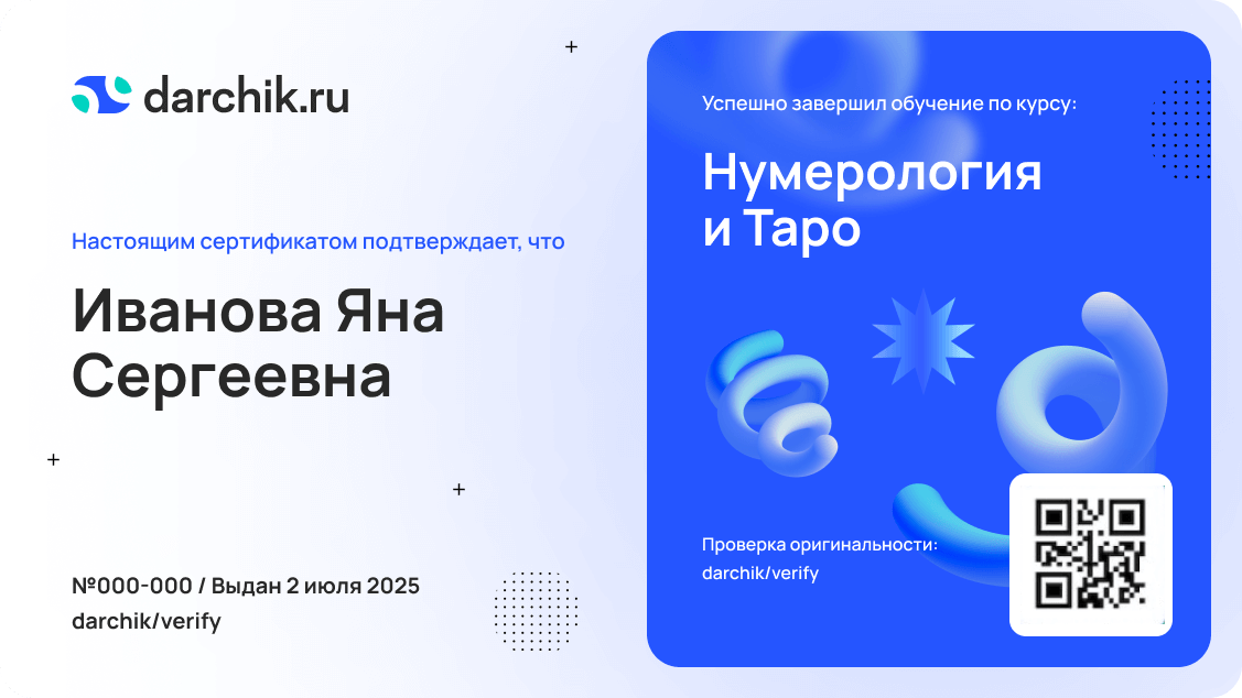 Сертификат станет подтверждением того, что вы умеете связывать символику чисел и карт Таро, создавая ещё более точные и многослойные расклады