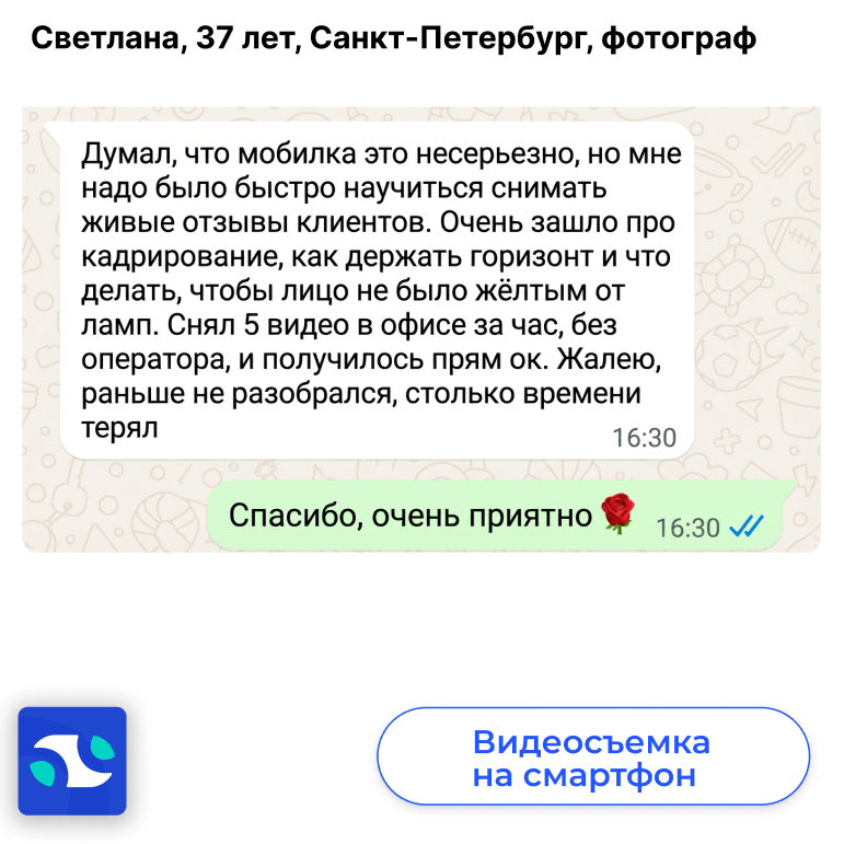 Если регулярно ведете соцсети или продвигаете проект, курс помогает быстрее собирать контент и стабилизировать качество за счет света, ракурсов и монтажа